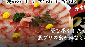 | 贅を尽くしたカニのコースや寒ブリの出世鍋など冬ならではの料理もございます。冬の丹後へお越しの際はぜひ、ご利用ください。(11月〜3月) |